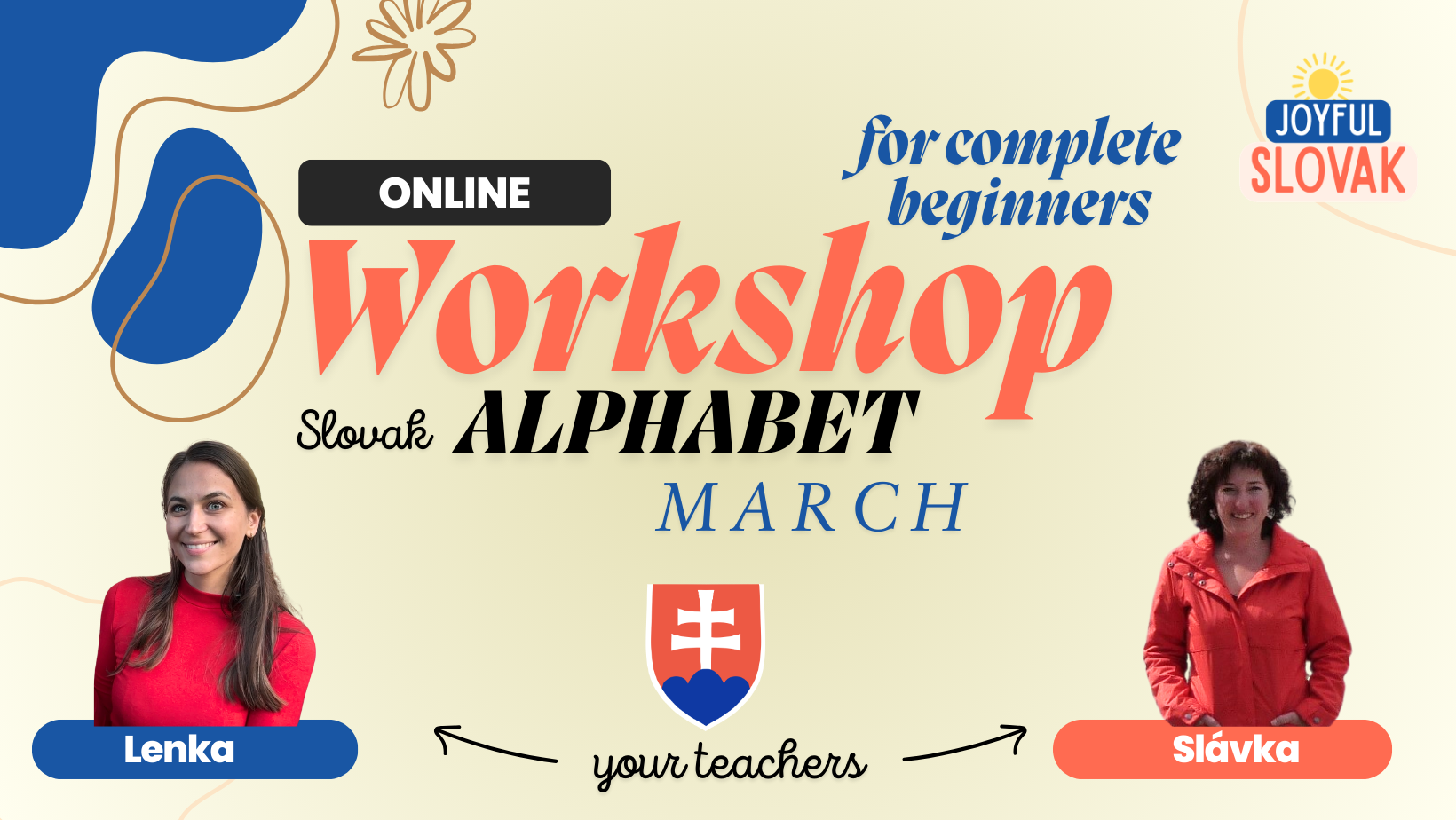 Cancelation policy: If you need to cancel your attendance, please write an email to joyful.slovak@gmail.com. If you make the cancelation earlier then 1 week ahead - 100% will be refunded to you. The money will be refunded to the same credit card it was paid with. It cannot be refunded to a different card. If you cancel less then 1 week ahead - no money will be refunded. Thank you for accepting and respecting this. 🙏