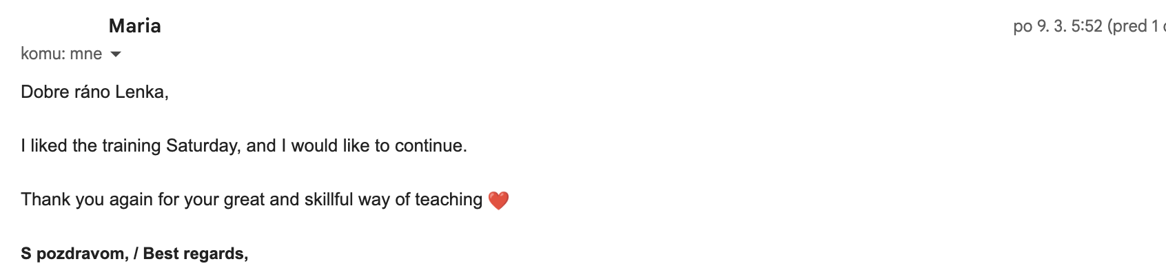 Before your first class, please write an email to 📩 joyful.slovak@gmail.com. I will arrange a short meeting with you and explain how our sessions work.